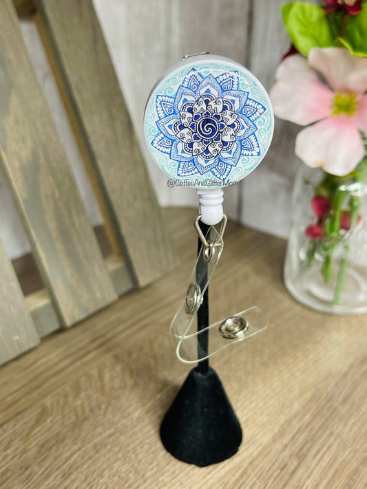 Blue Mandala Glitter-Free Badge Reel