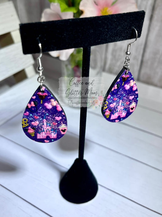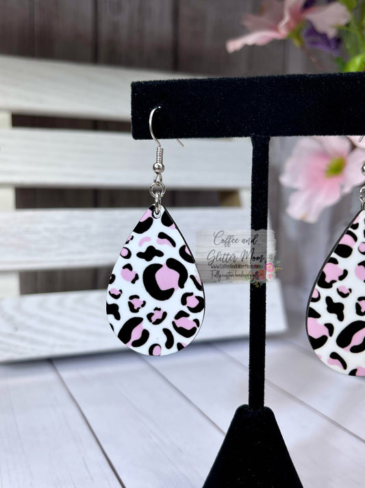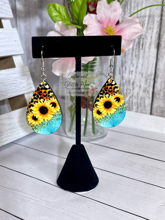 Sunflower Leopard/Cowhide and Turquoise Teardrop Earrings