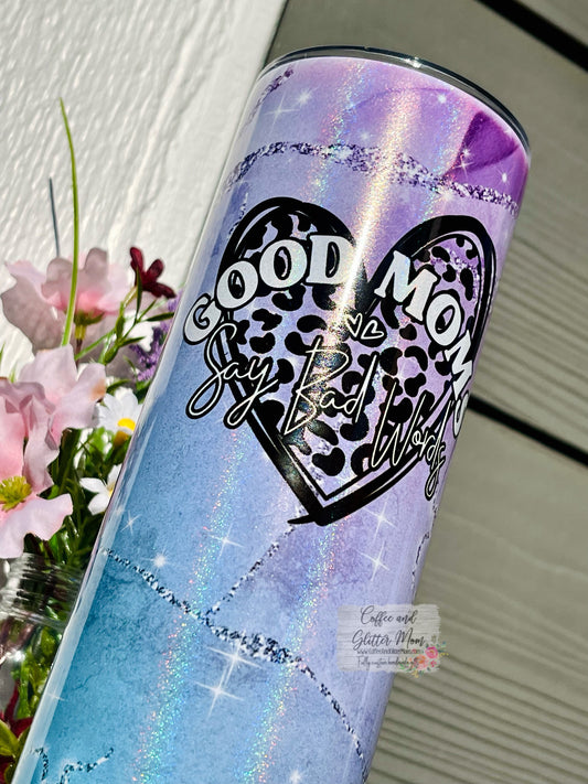 Good Moms Say Animal Print 20oz Holographic White Skinny Tumbler