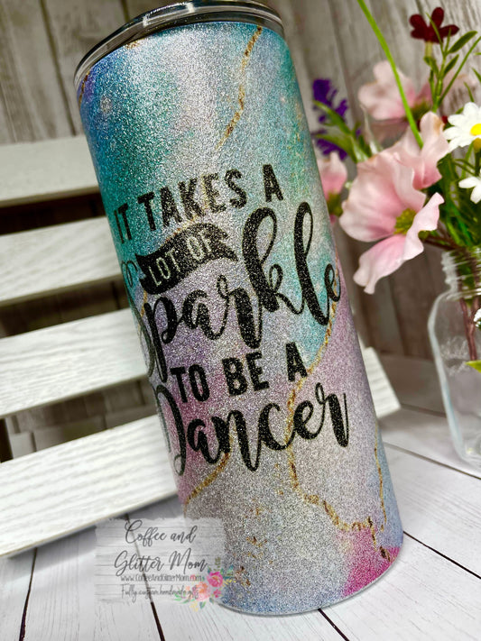 Takes Sparkle To Dance 15oz Silver Glitter Skinny Tumbler