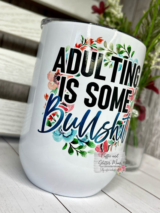 Adulting is some Bullshit 15oz Wine Tumbler with Lid and Straw