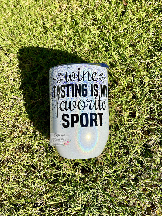 Wine Tasting is my Favorite Sport 12oz Holographic Sparkle Wine Tumbler