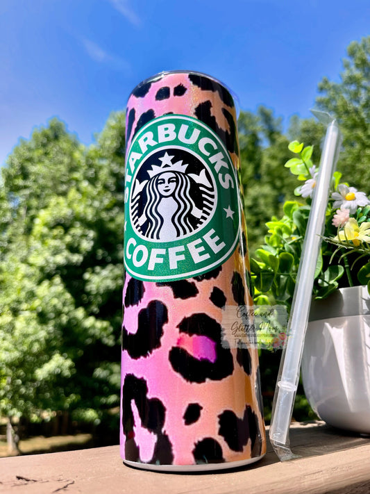 Starbucks Purple and Orange Animal Print 20oz White Rainbow Skinny Tumbler