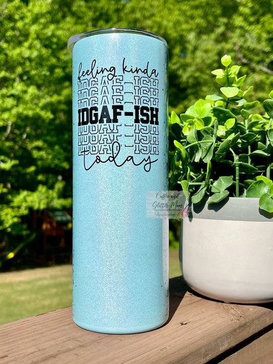 Feeling IDGAF-Ish Today Animal Print 20oz Mint Rainbow Skinny Tumbler