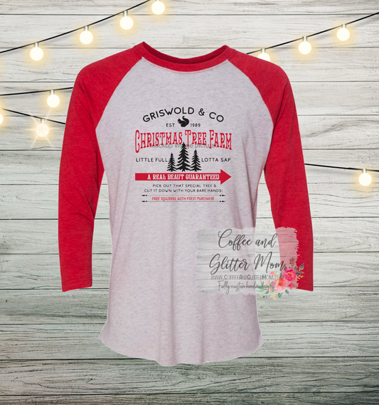Griswold Christmas Trees Unisex Tri-Blend Three-Quarter Sleeve Raglan Tee