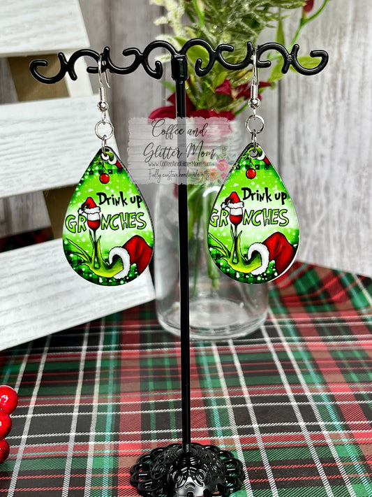 Drink Up Grinches Christmas Earrings