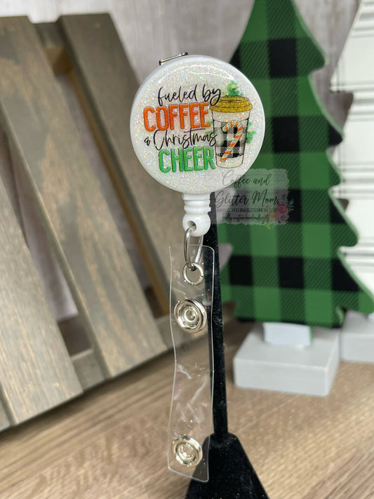 Fueled By Coffee and Christmas Plaid Badge Reel