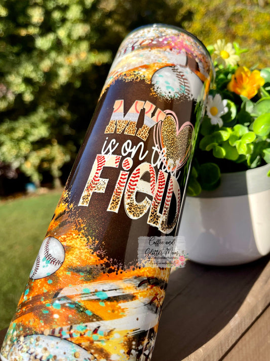 My Heart is on that Field Baseball 20oz Holographic Skinny Tumbler