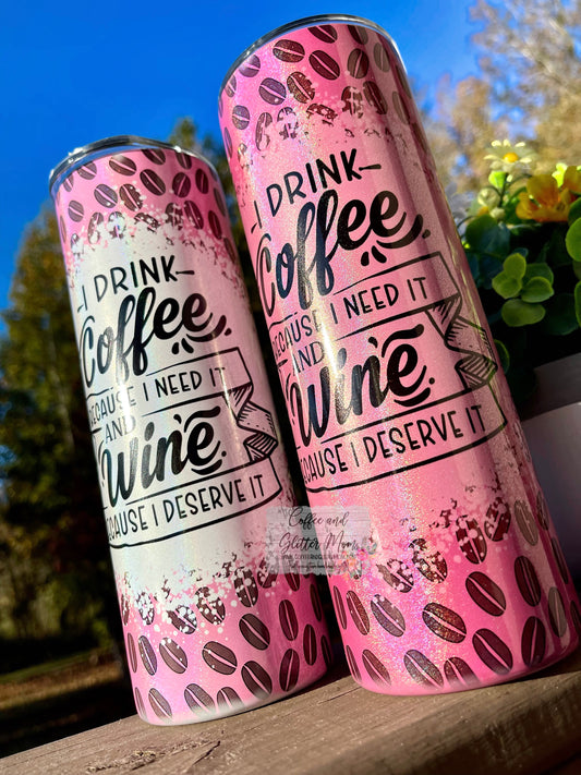 I Drink Coffee & Wine 20oz Holographic Rainbow Skinny Tumbler