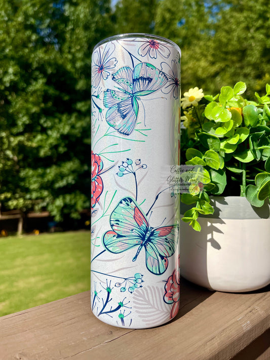 Butterfly Mama 20oz Holographic White Skinny Tumbler