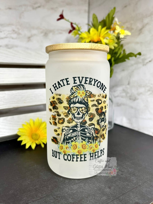 I Hate Everyone But Coffee Pick Your Color Glass Can