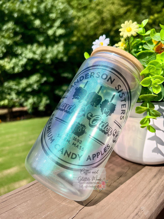 Sanderson Witches Apples Green Iridescent Glass Can