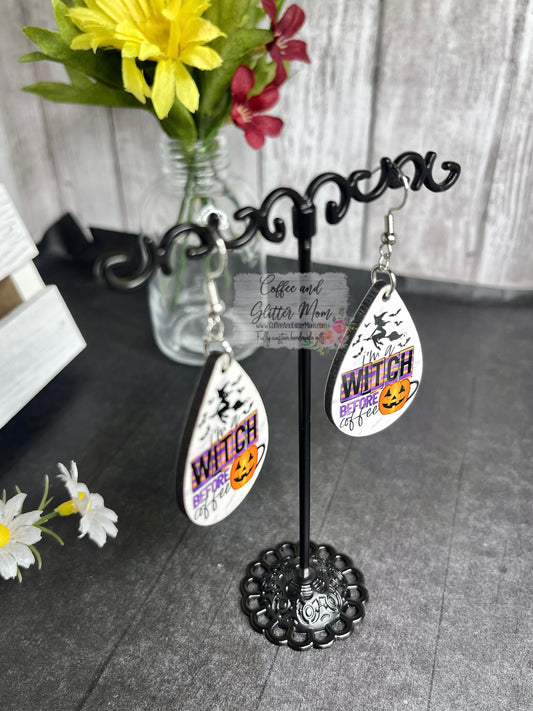 Witch Before Coffee Halloween Teardrop Earrings