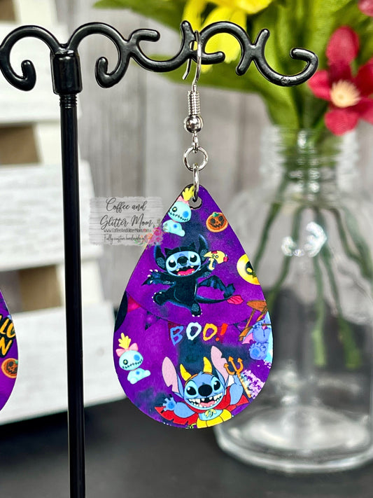Purple Stitch Halloween Teardrop Earrings