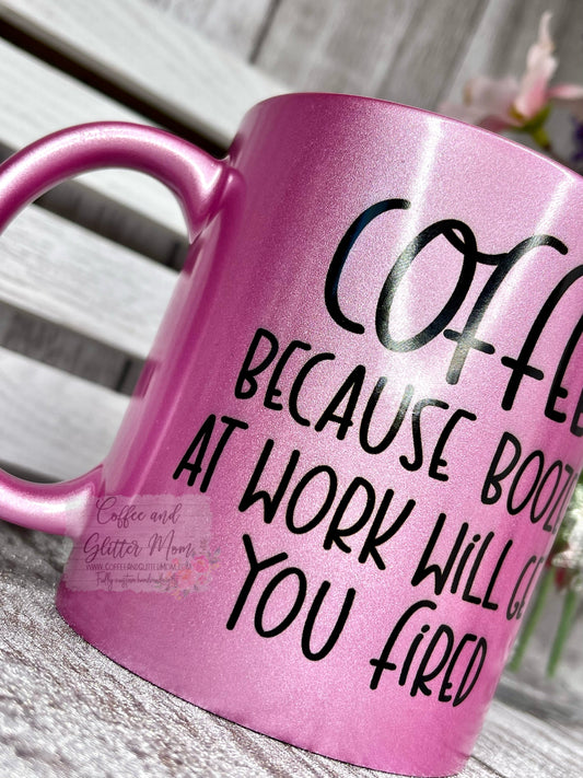 Coffee Because Booze Gets You Fired 11oz Pink Pearl Ceramic Mug