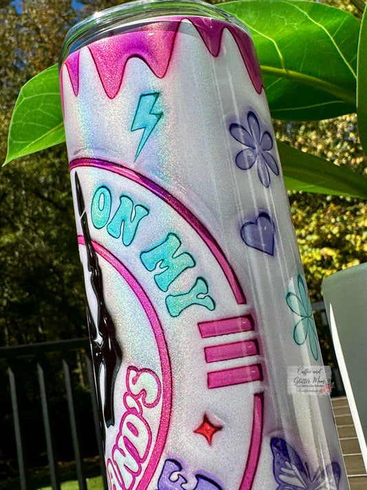 On My Husband's Last Nerve Checkered 12oz Holographic Sparkle Wine Tumbler