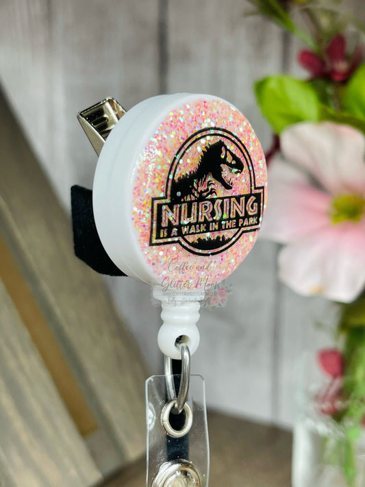 Nursing is Like A Walk in the Park Blush Pink Badge Reel