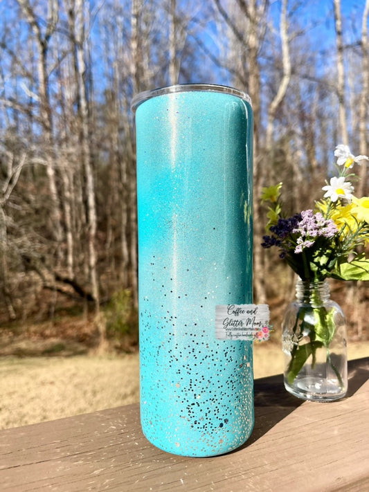 Teal and White with Silver Chunky 20oz Skinny Tumbler