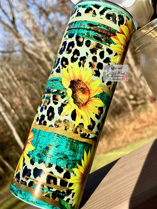 Rustic Sunflower Leopard 20oz Holographic Mint Skinny Tumbler