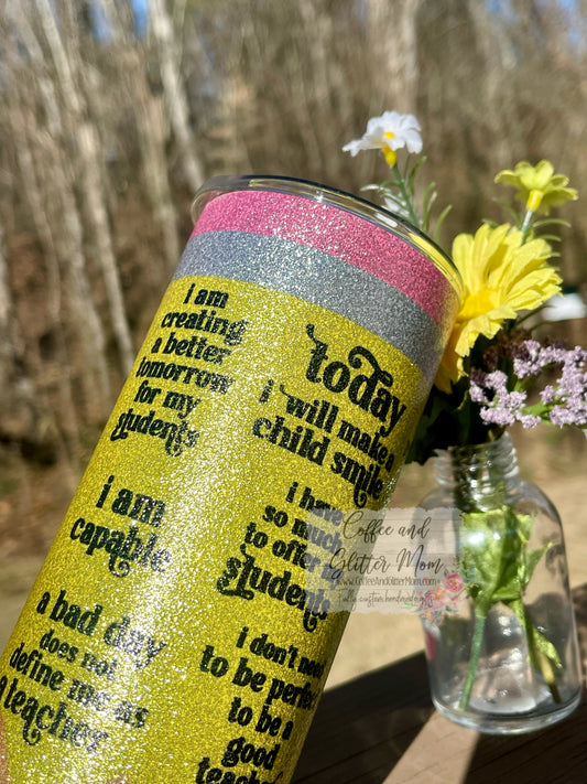 Teacher Inspiration 15oz Silver Glitter Skinny Tumbler