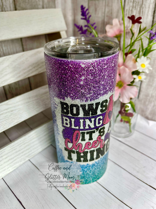Bows And Bling Cheer Thing 15oz Silver Glitter Skinny Tumbler