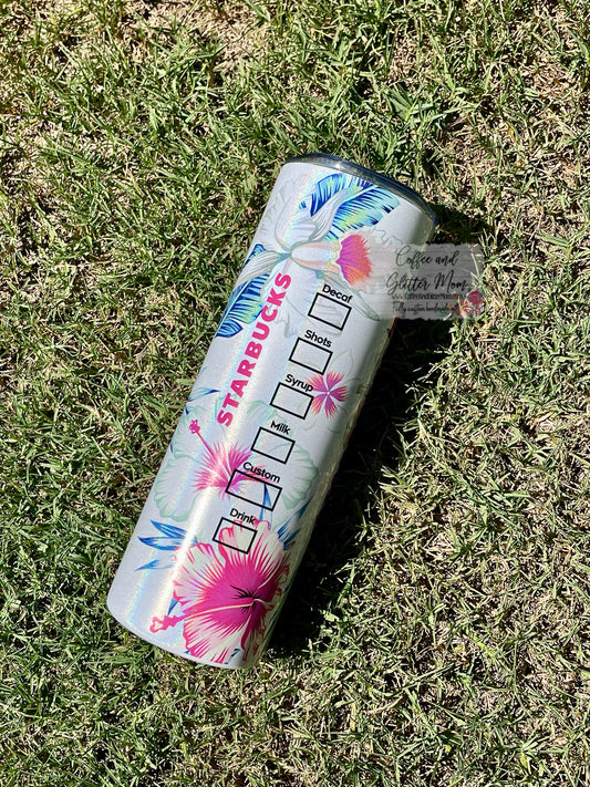 Starbucks Tropical Hibiscus 20oz White Rainbow Skinny Tumbler