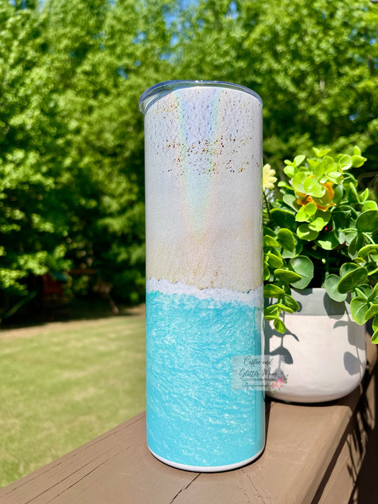 Holographic Beach 20oz Rainbow Skinny Tumbler