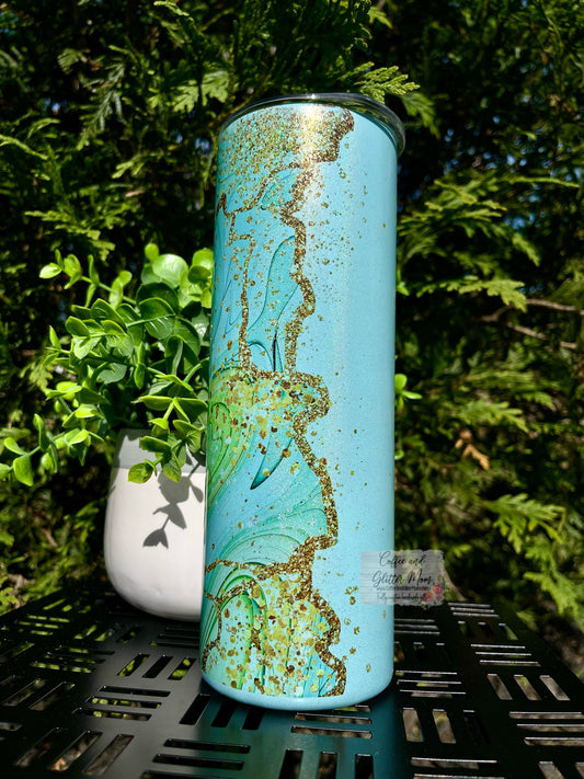Golden Mint Marble Rainbow 20oz Skinny Tumbler