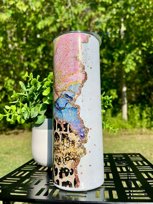 Golden Animal Print 20oz Pink Rainbow Skinny Tumbler