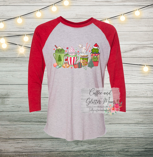 Vintage Grinch Coffee Unisex Tri-Blend Three-Quarter Sleeve Raglan Tee