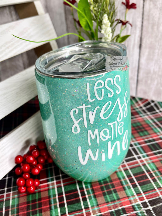 Less Stress More Wine 15oz Wine Tumbler with Lid and Straw