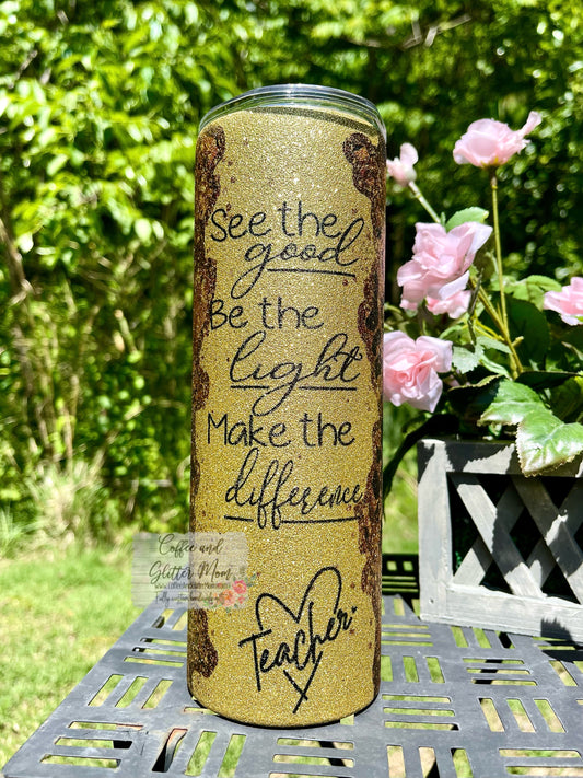 Teachers See The Good 20oz Golden Glitter Skinny Tumbler