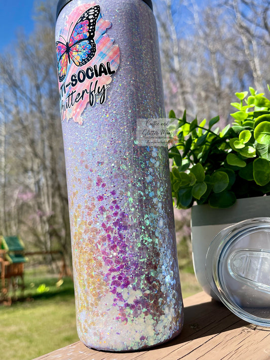 Anti-Social Butterfly 30oz Duo-Lid Skinny Tumbler With Straw
