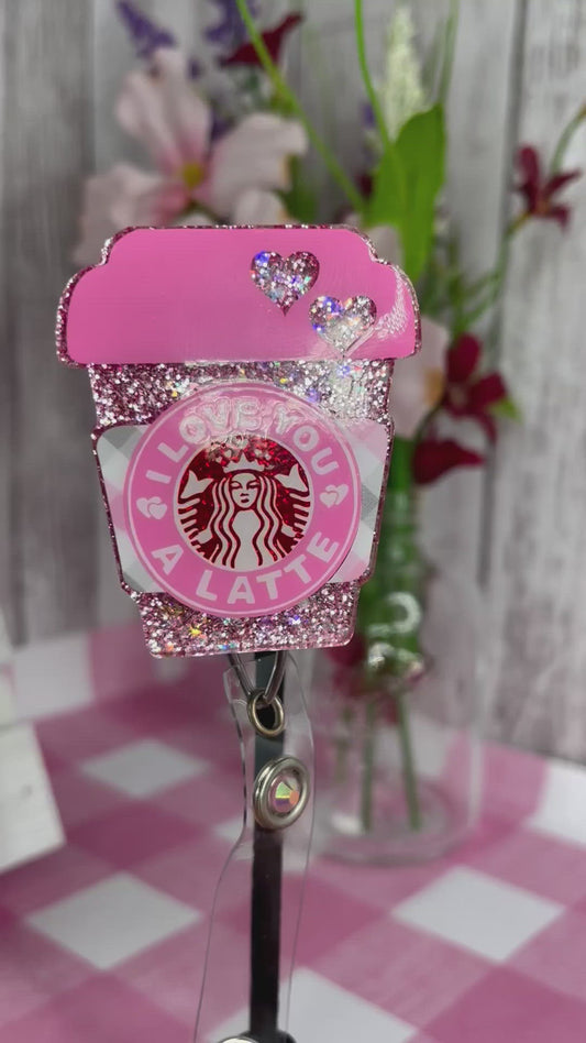 Love You A Latte Coffee Valentine's Designer Badge Reel