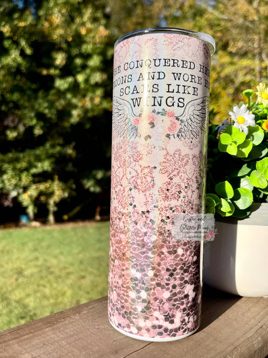 Wore Her Scars Like Wings 20oz Holographic Pink/White Skinny Tumbler
