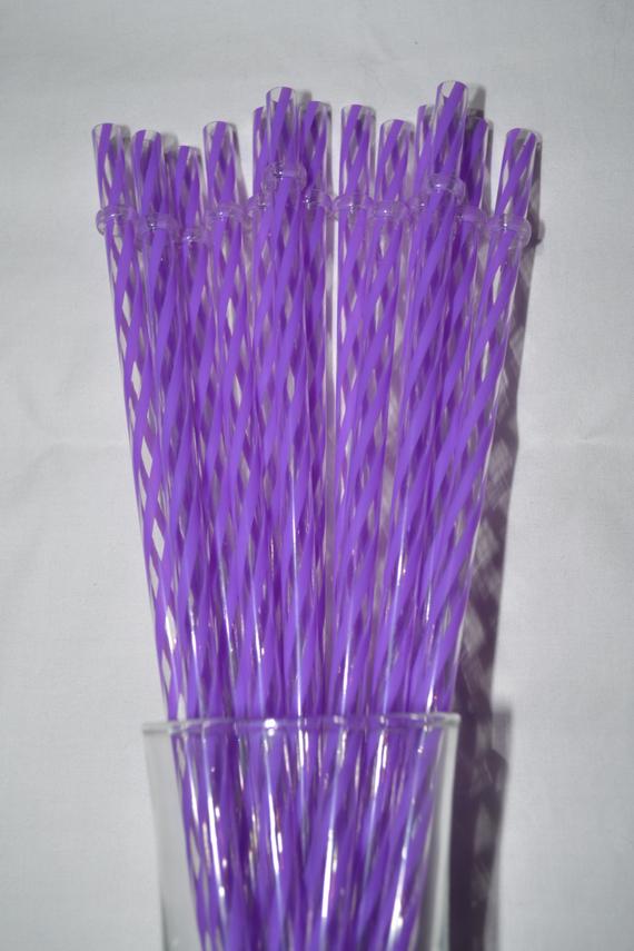 These straws are clear and have colored swirly stripes. The straws are 9/32" (0.28") (7.5mm) diameter, & 11" long and have the small ring. Put the ring-end into your drink, snap on the lid and the straw won't fall out.