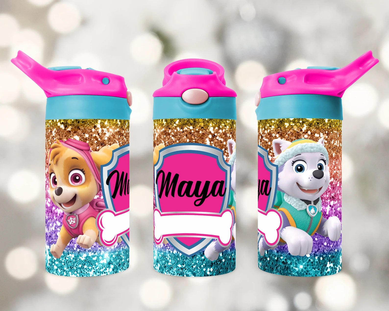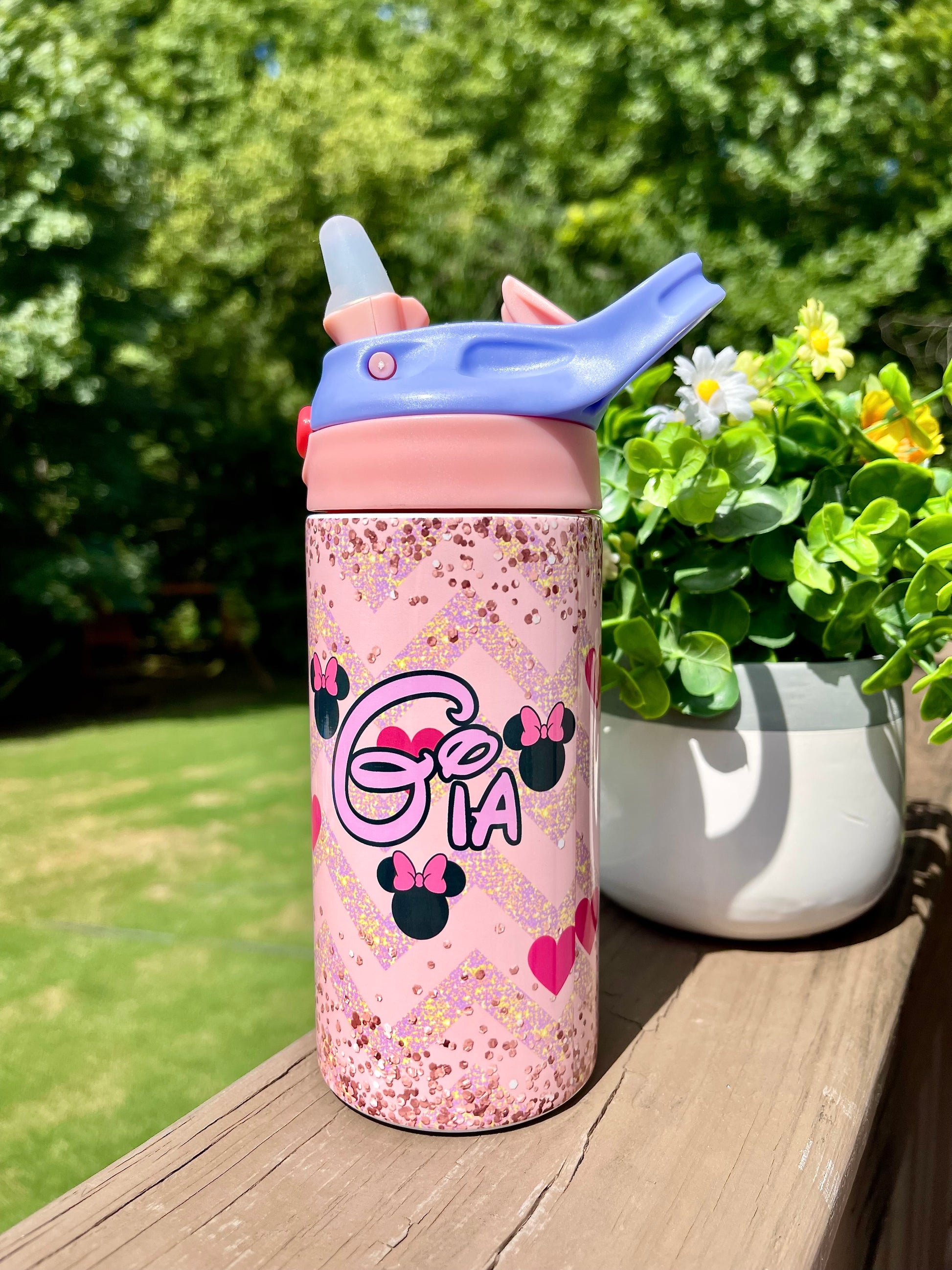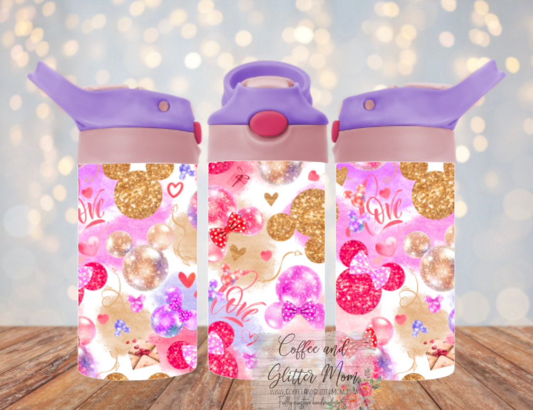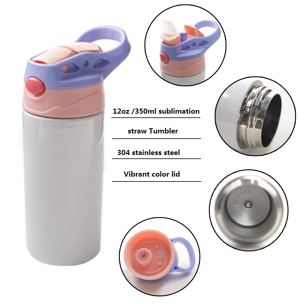Custom 12oz Kids Pink Top Water Bottle Tumbler
