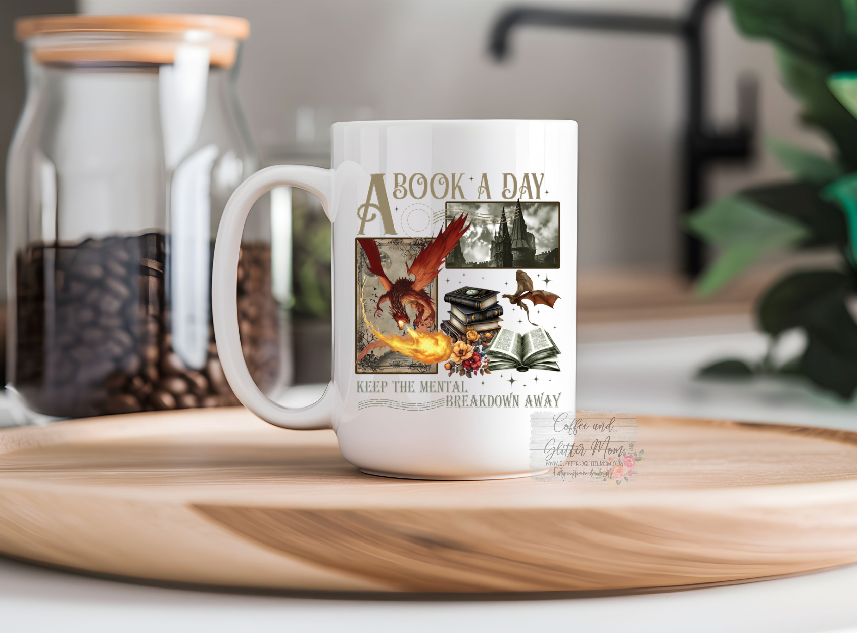 A Book A Day Keeps the Mental Breakdown Away 15oz Ceramic Mug