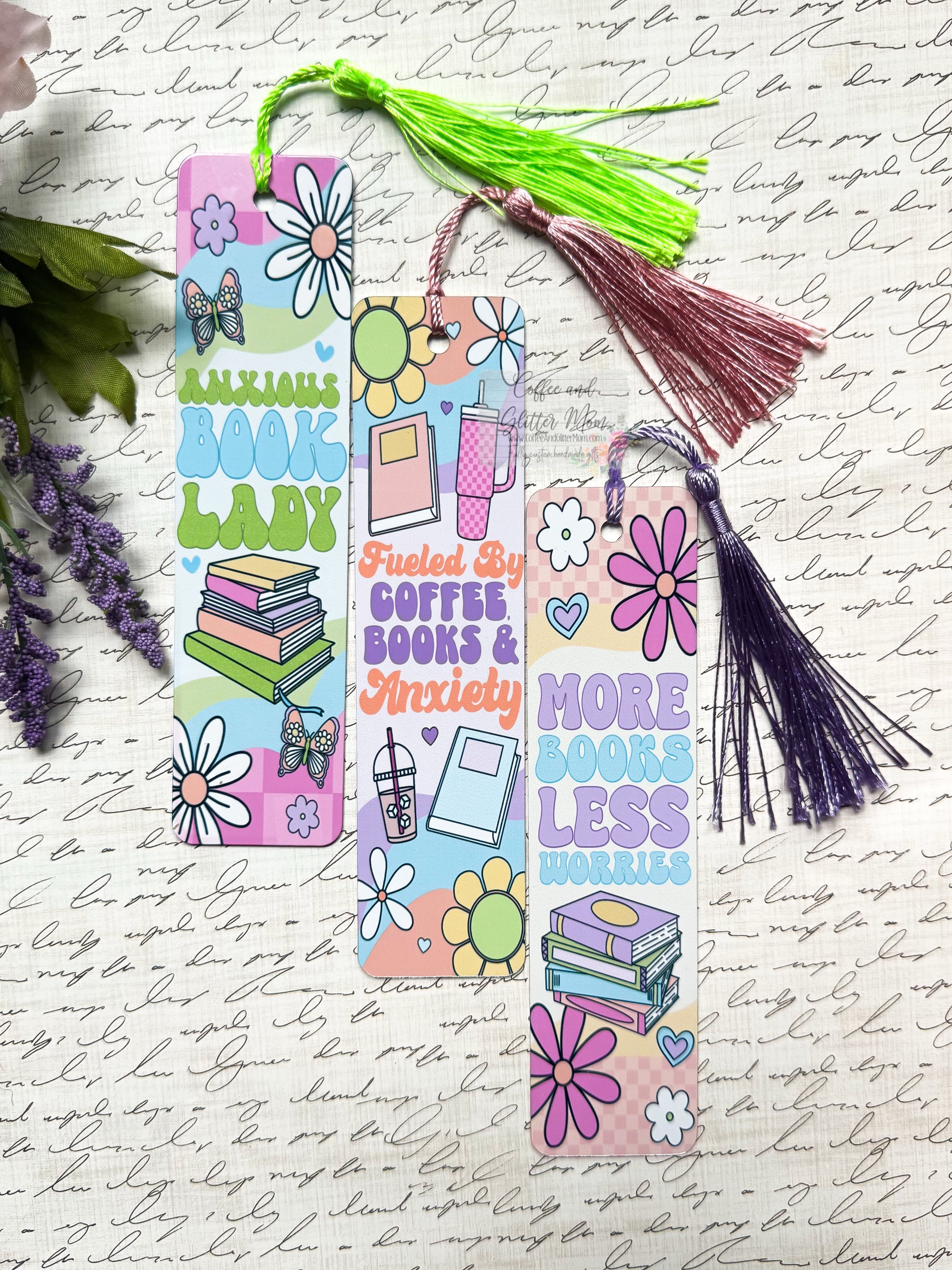 Reading the anxiety away in style with fun and full color bookmarks! These are unique having high-quality images on the front and back! They will also have a color-coordinating tassel.