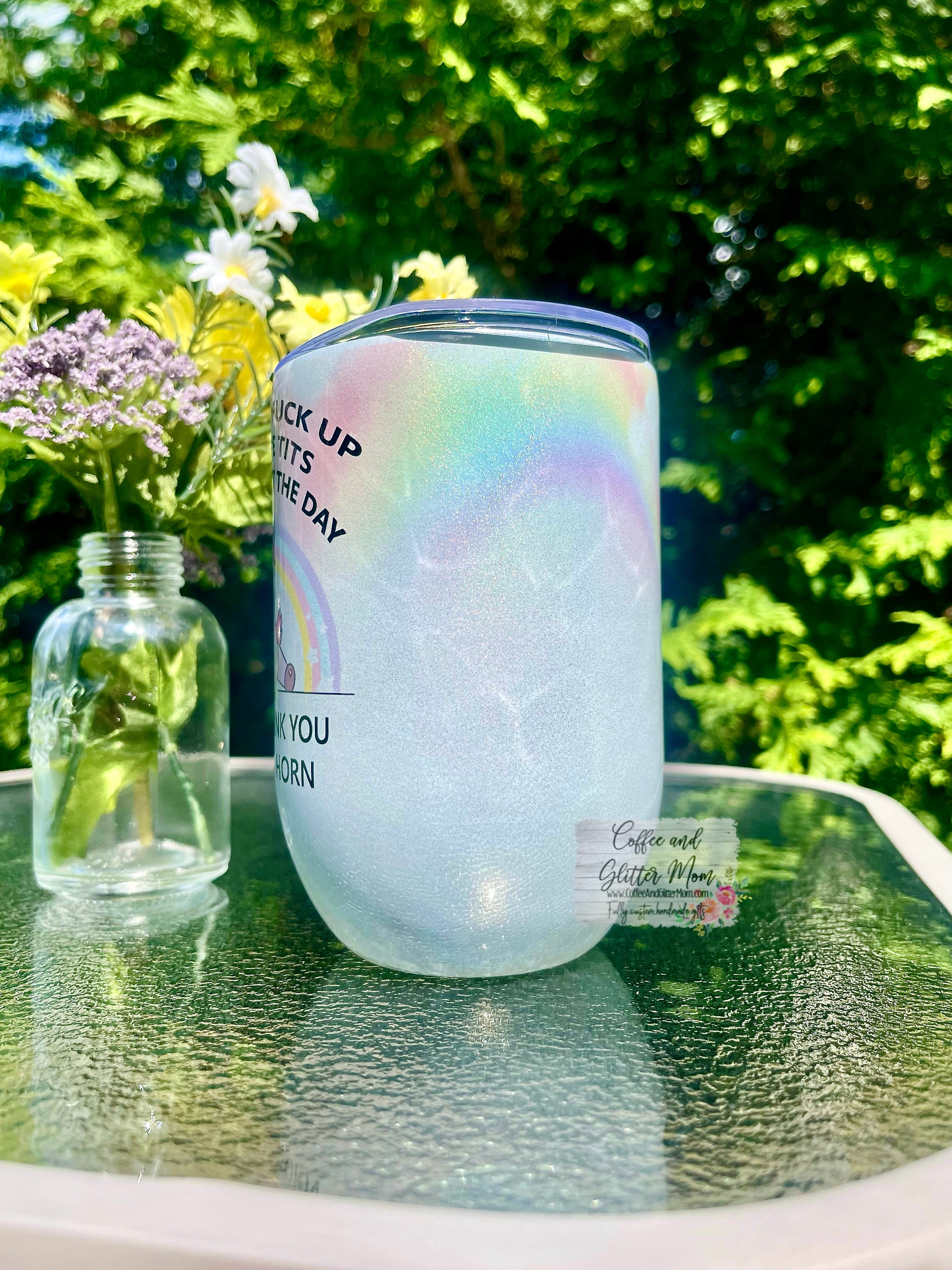 Back Up Sprinkletits Rainbow Wraparound 12oz Holographic Sparkle Wine Tumbler