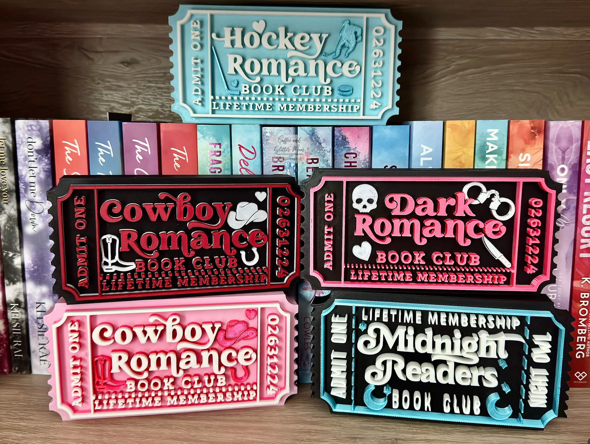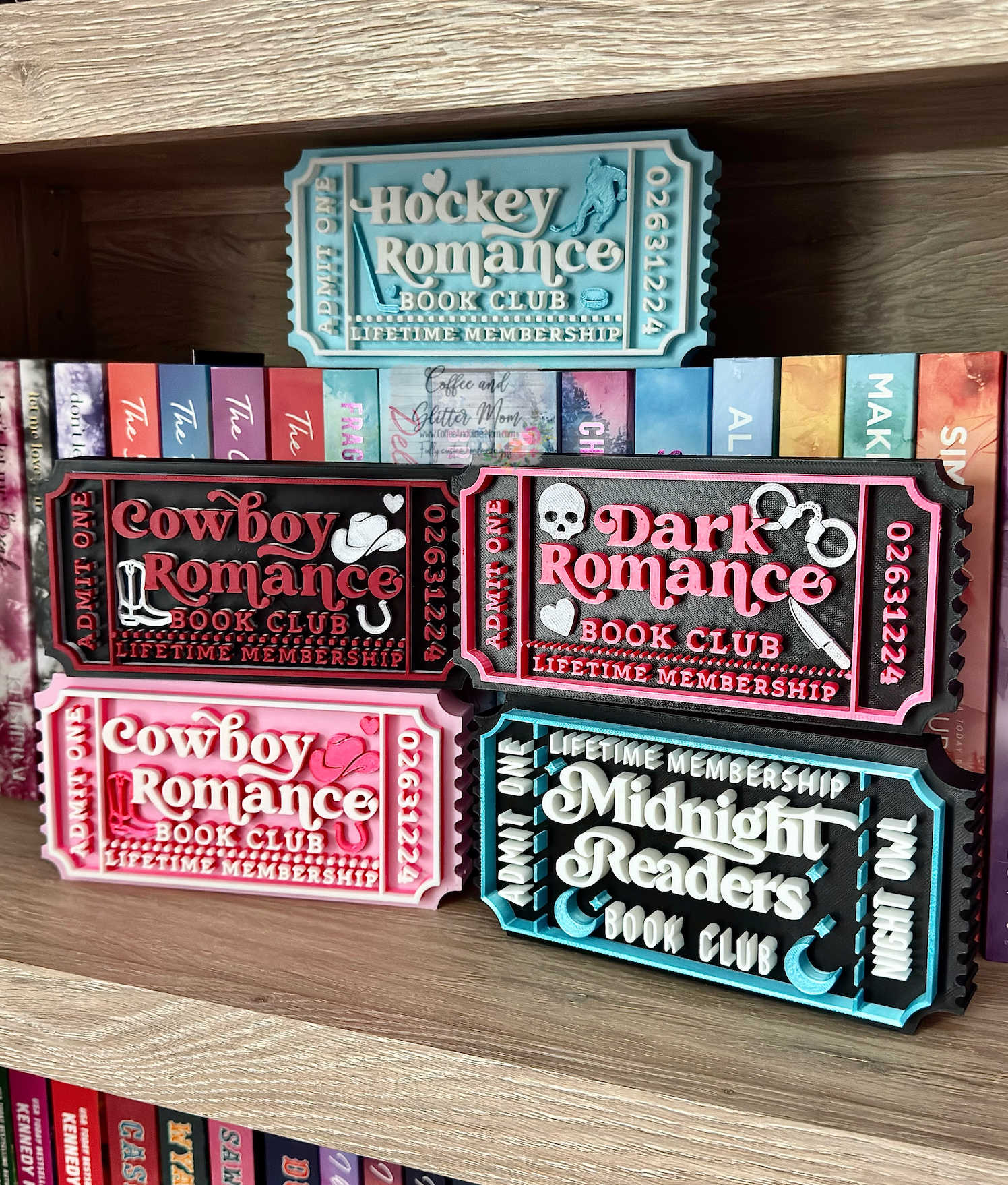 The perfect bookshelf accessory! These can sit on top of your books to not block them, or proudly be displayed front and center to showcase your favorite reads!