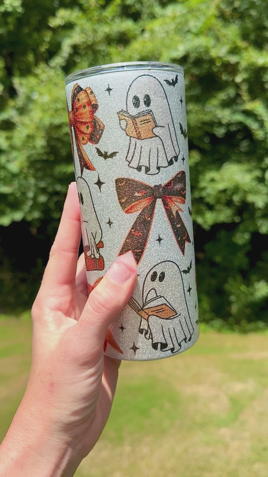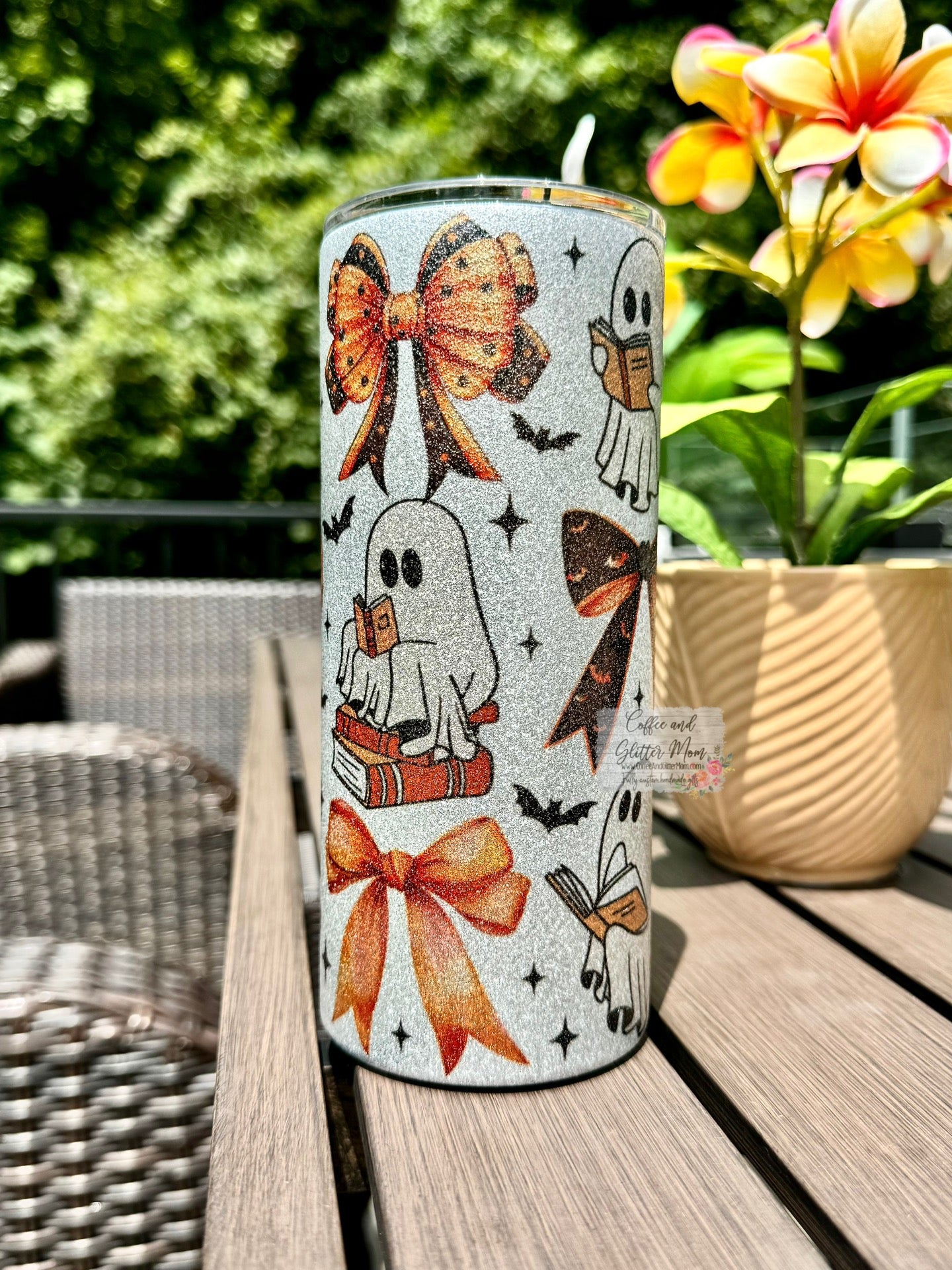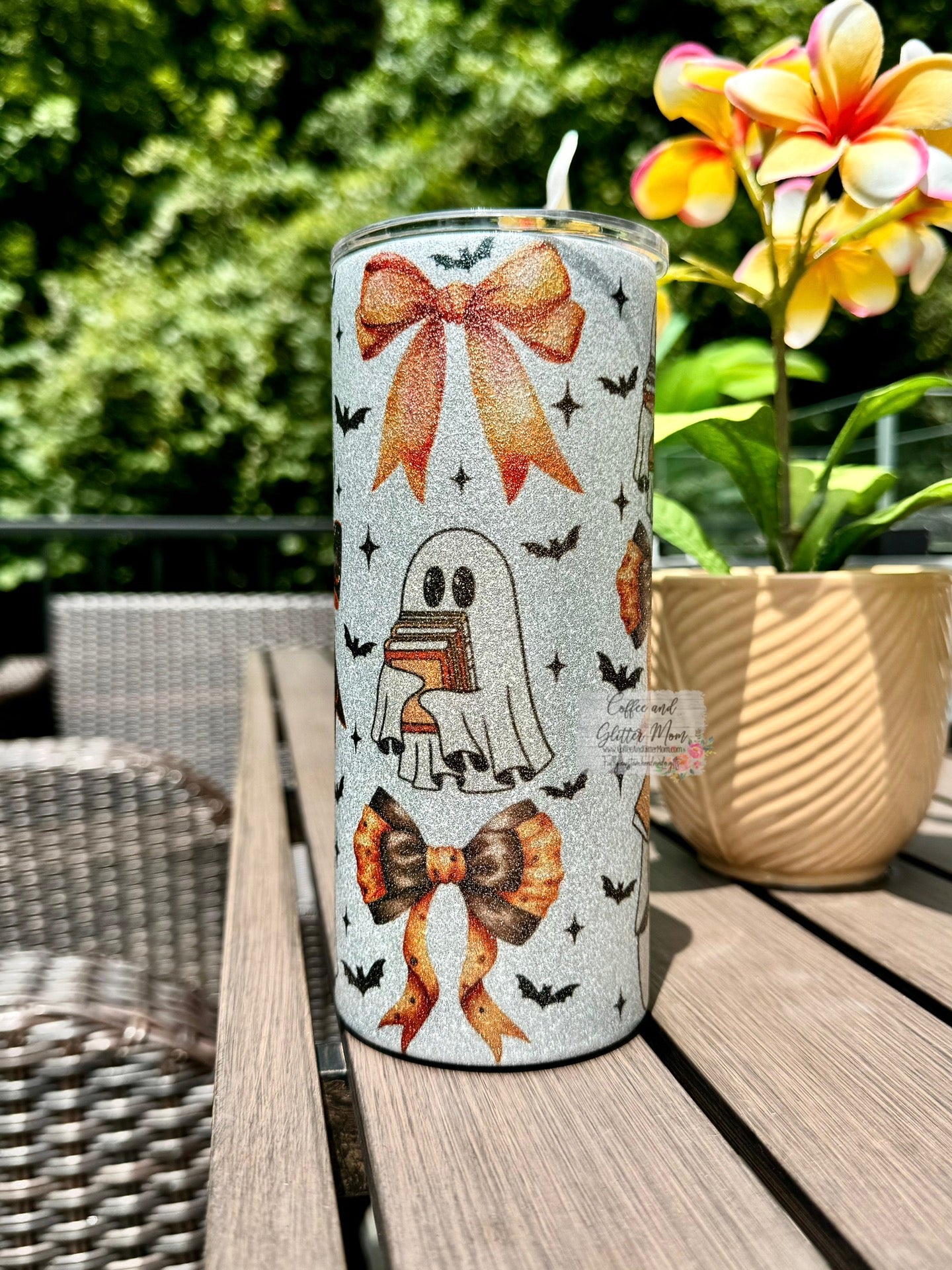 Bookish Ghost 15oz Silver Glitter Skinny Tumbler