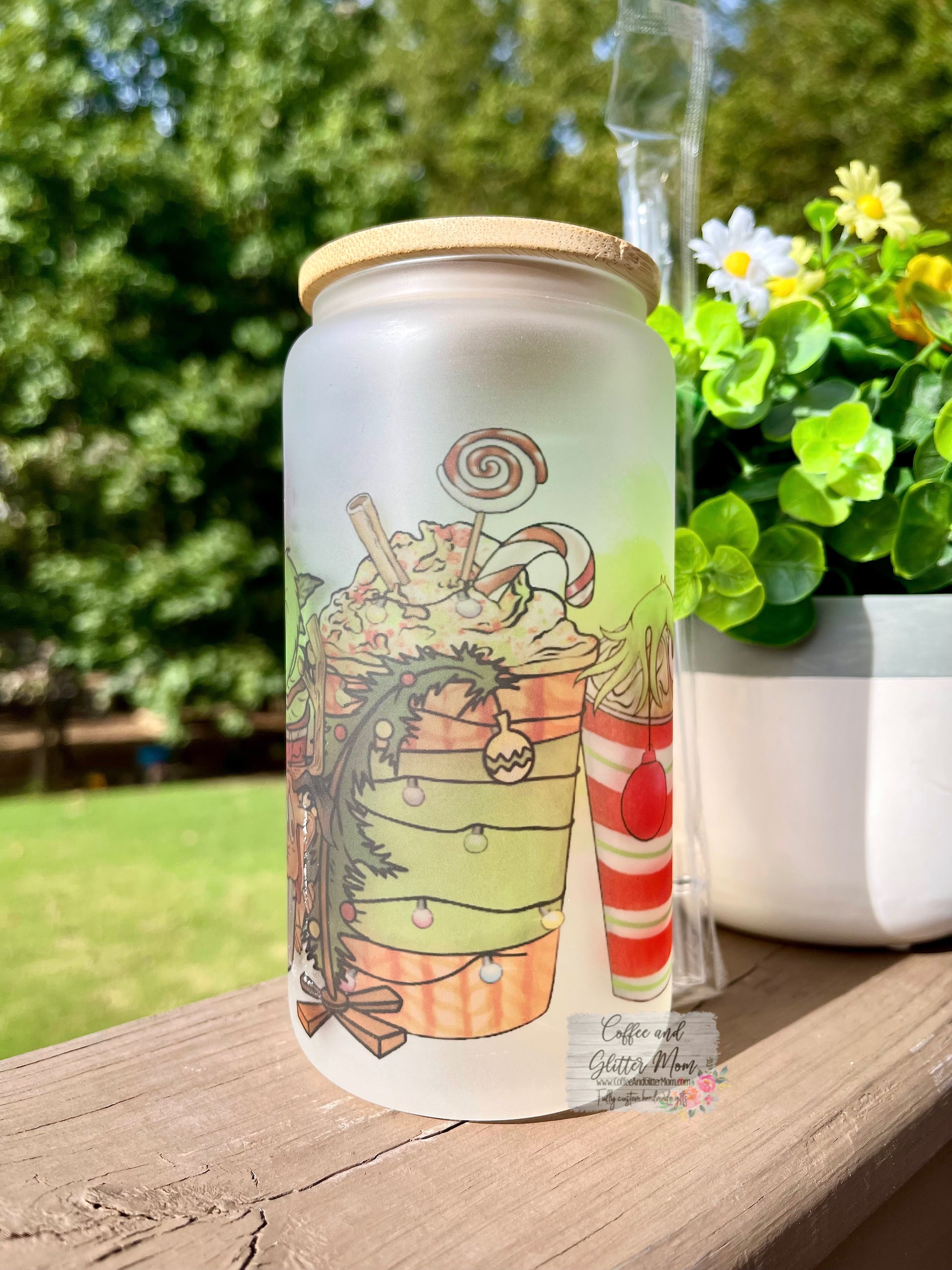 Christmas Grinches Coffee 16oz Frosted Glass Can