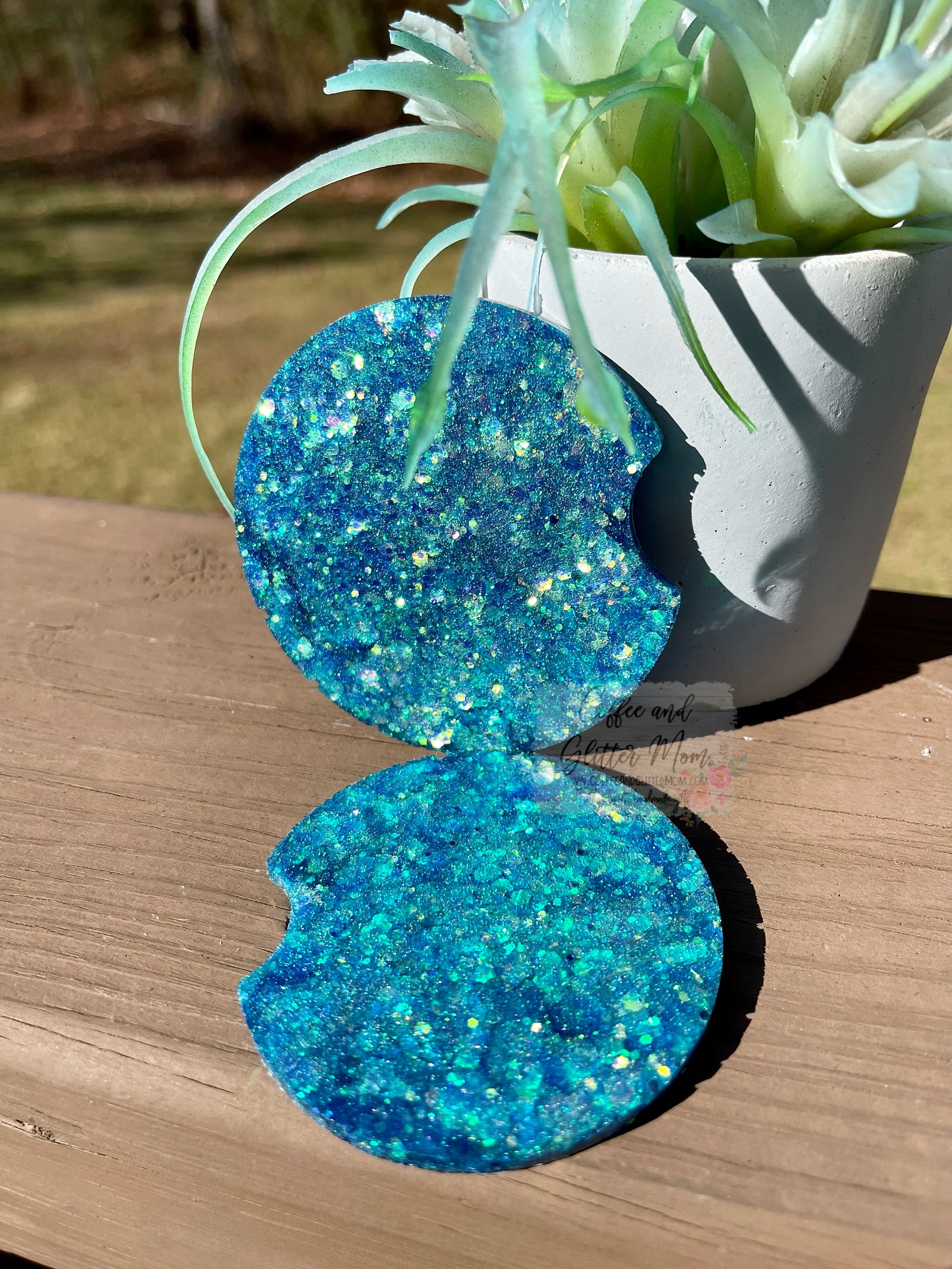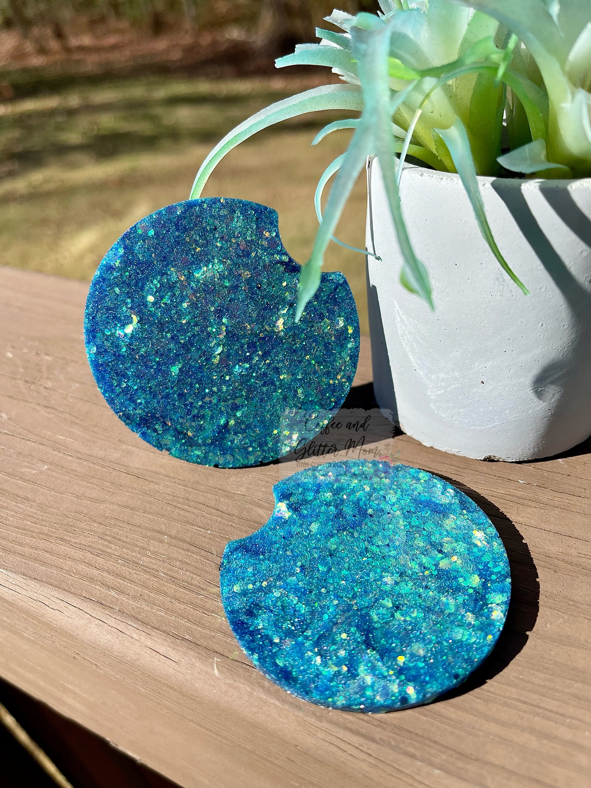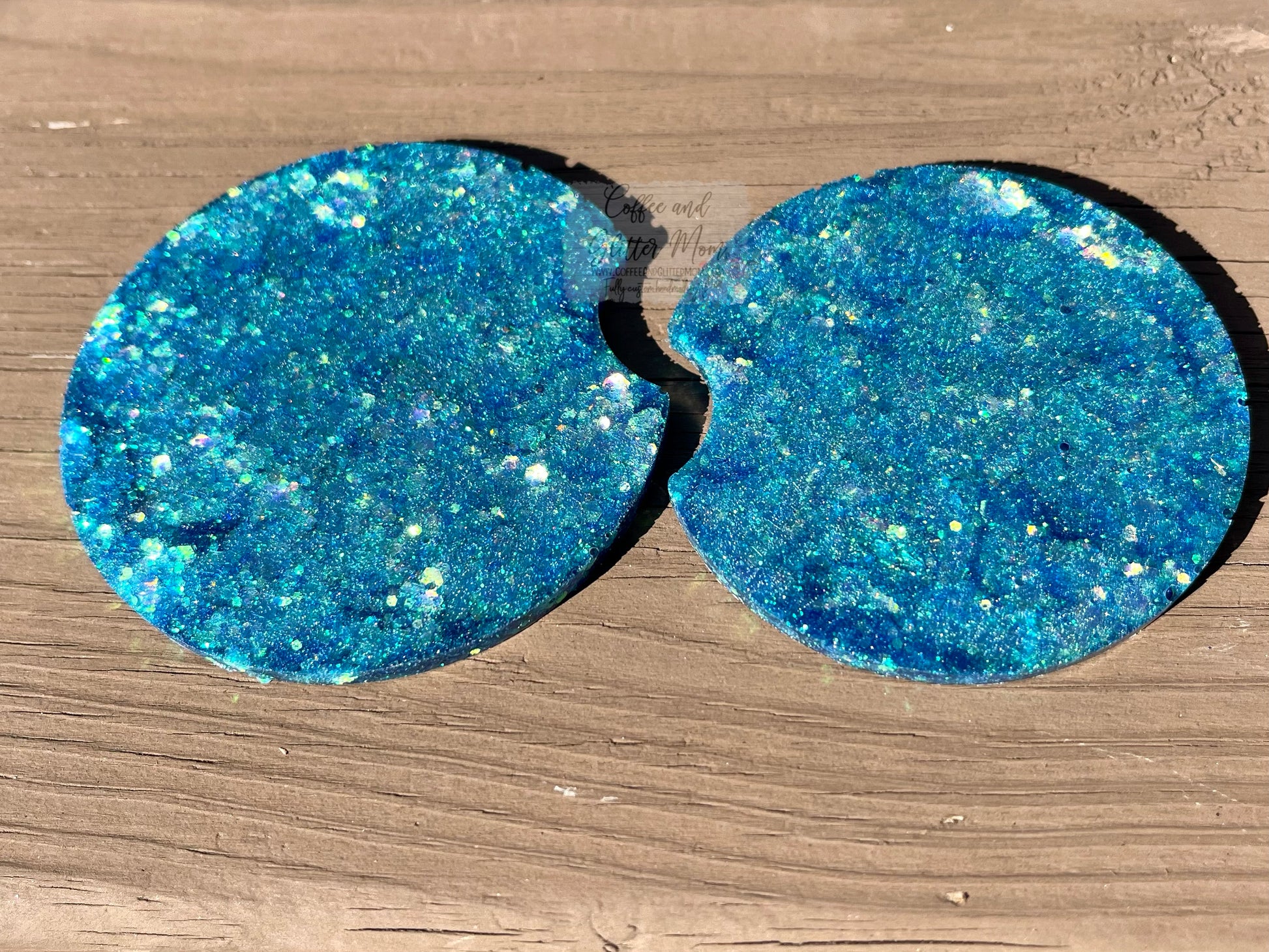 Each coaster is handmade by me in my home studio. As with any handmade item, there may be slight variations or imperfections that appear on the underside of the coasters. These are not visible when the coasters are in use, and are usually a result of me adding extra glitter (which means more sparkle for you!).