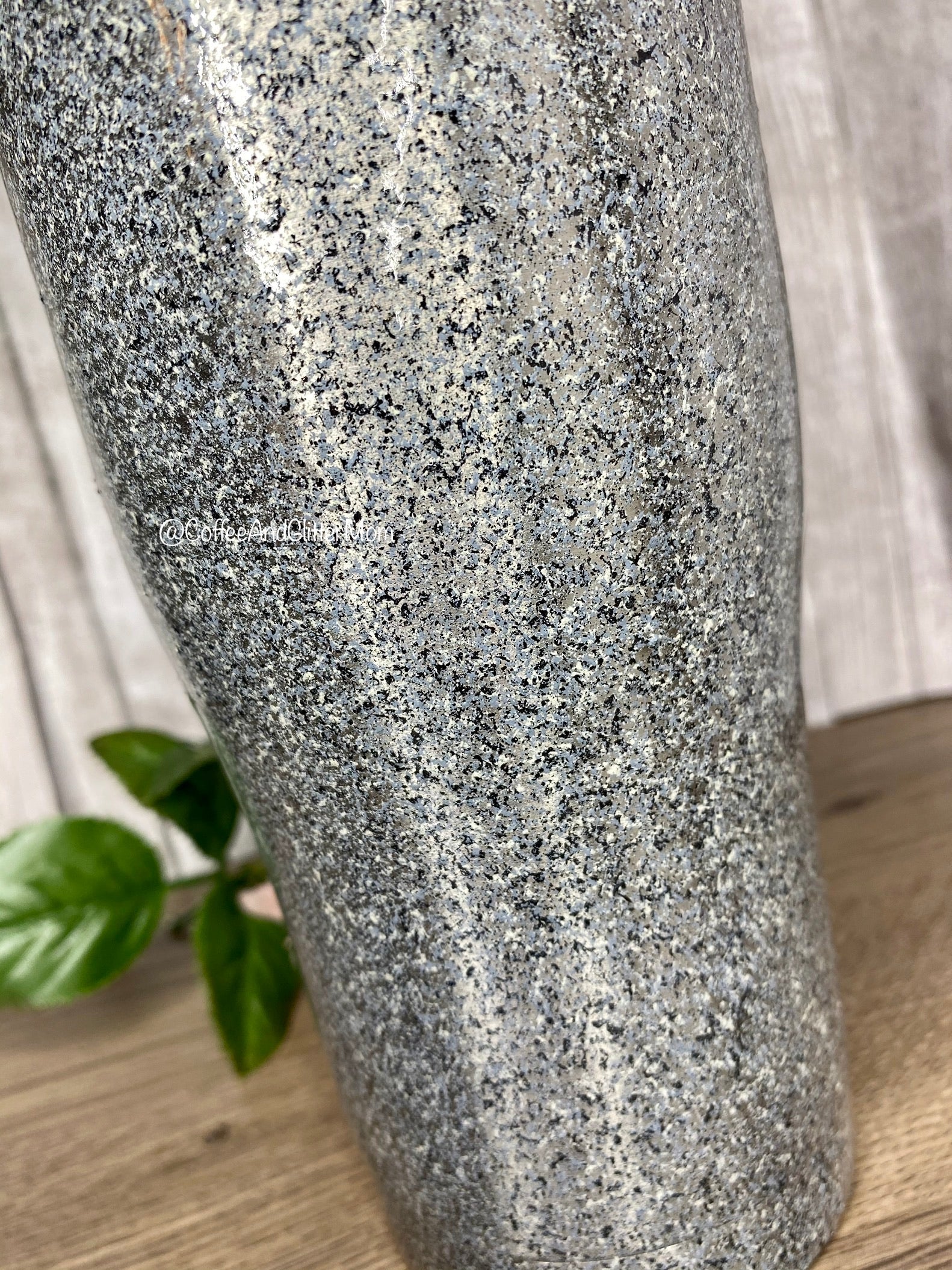 You're purchasing the exact 20oz travel tumbler pictured. It comes with a lid that slides closed. It's mostly silver with a concrete splatter. Each design is unique and one of a kind, no two can be exactly the same but it makes them all the more special!