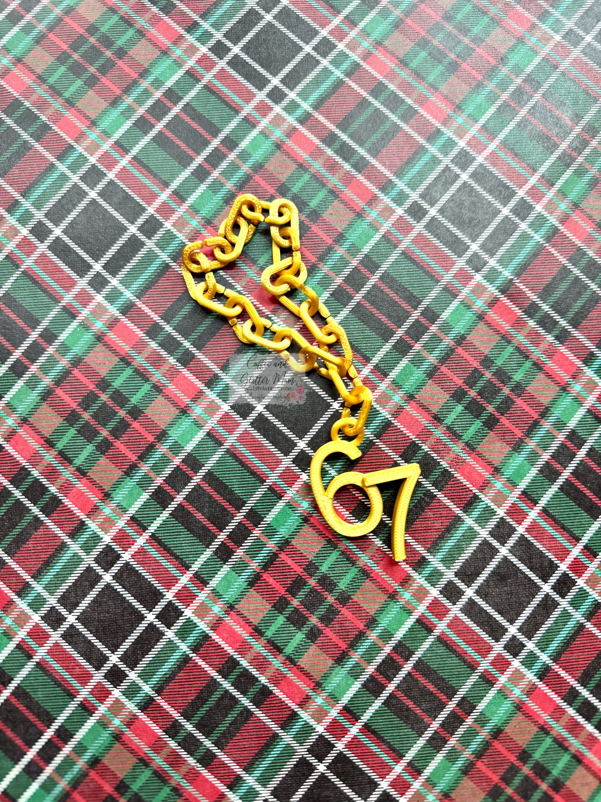 Give your Elf some serious street cred this holiday season with the 6-7, “Six Seven” chain necklace! This 67 3D printed elf accessory is for elves who are too cool for the shelf, always ready for mischief, and obviously have a flair for North Pole fashion. The chain will be made in a metallic silver or gold color for an extra pop of bling!!
