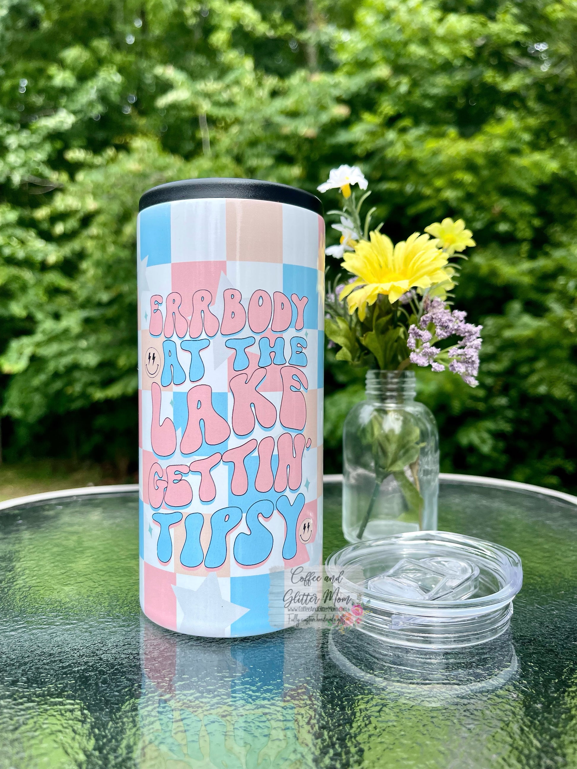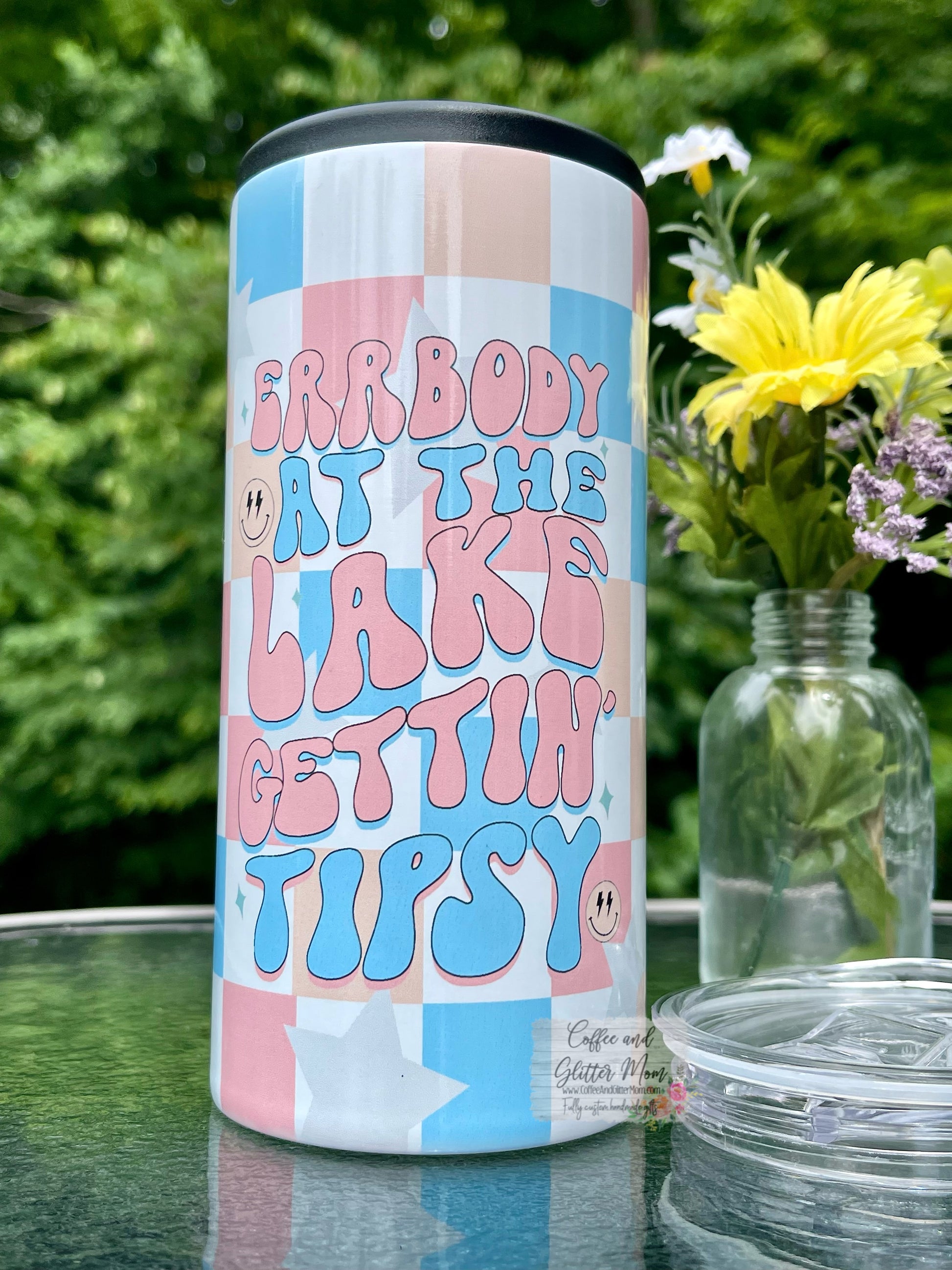 Everybody At The Lake Gettin' Tipsy Skinny Can Cooler Duo-Lid Tumbler