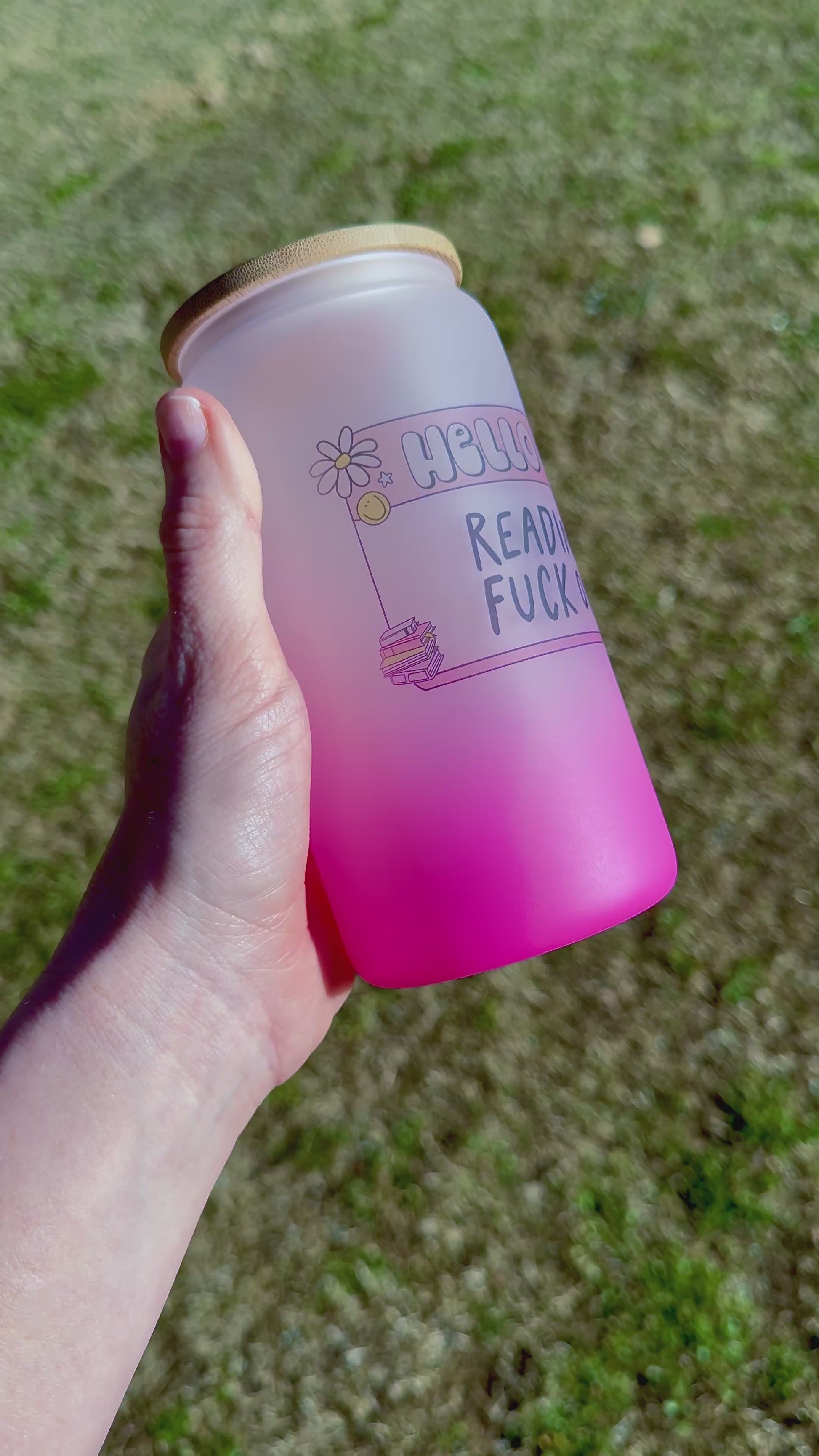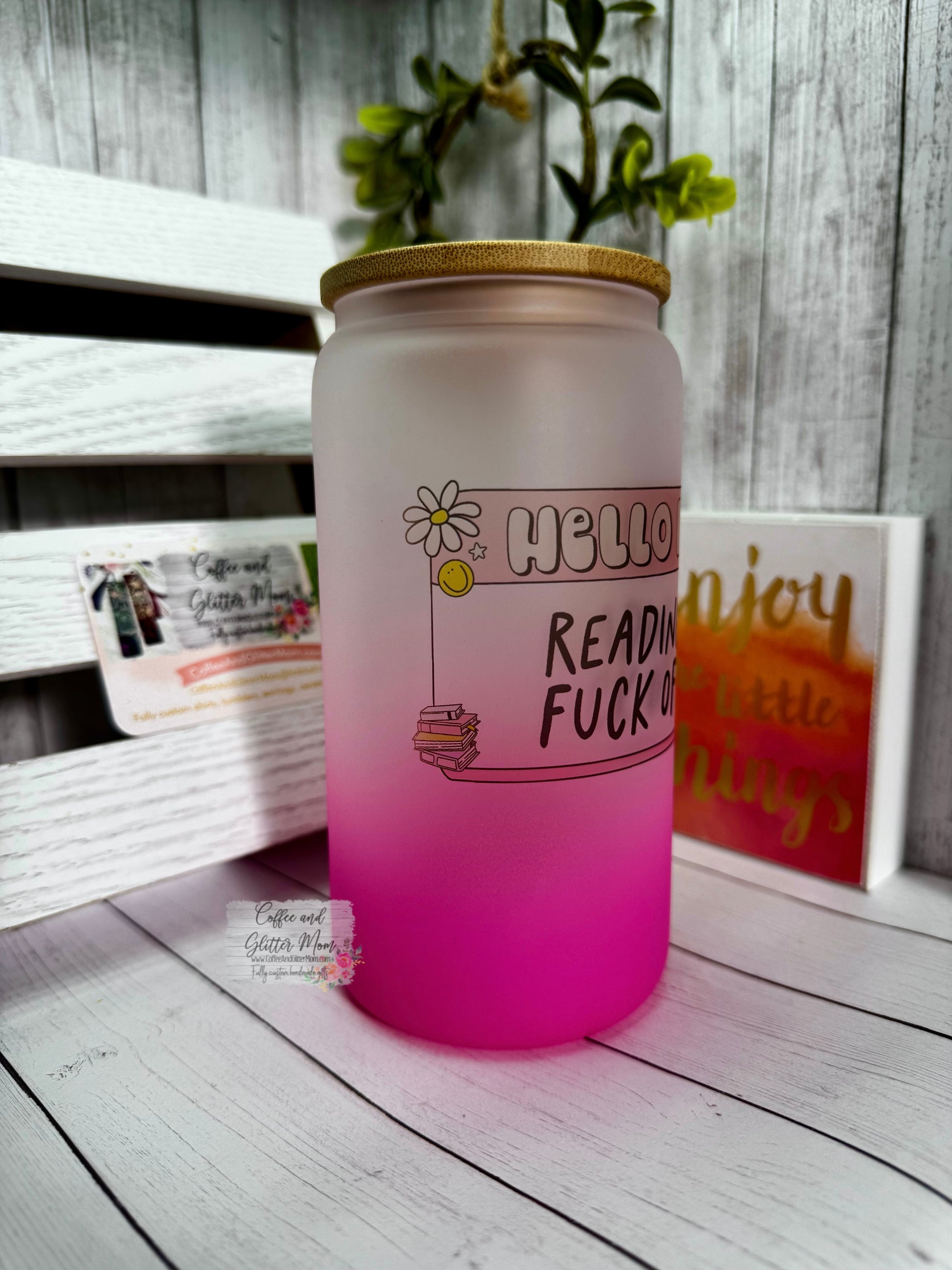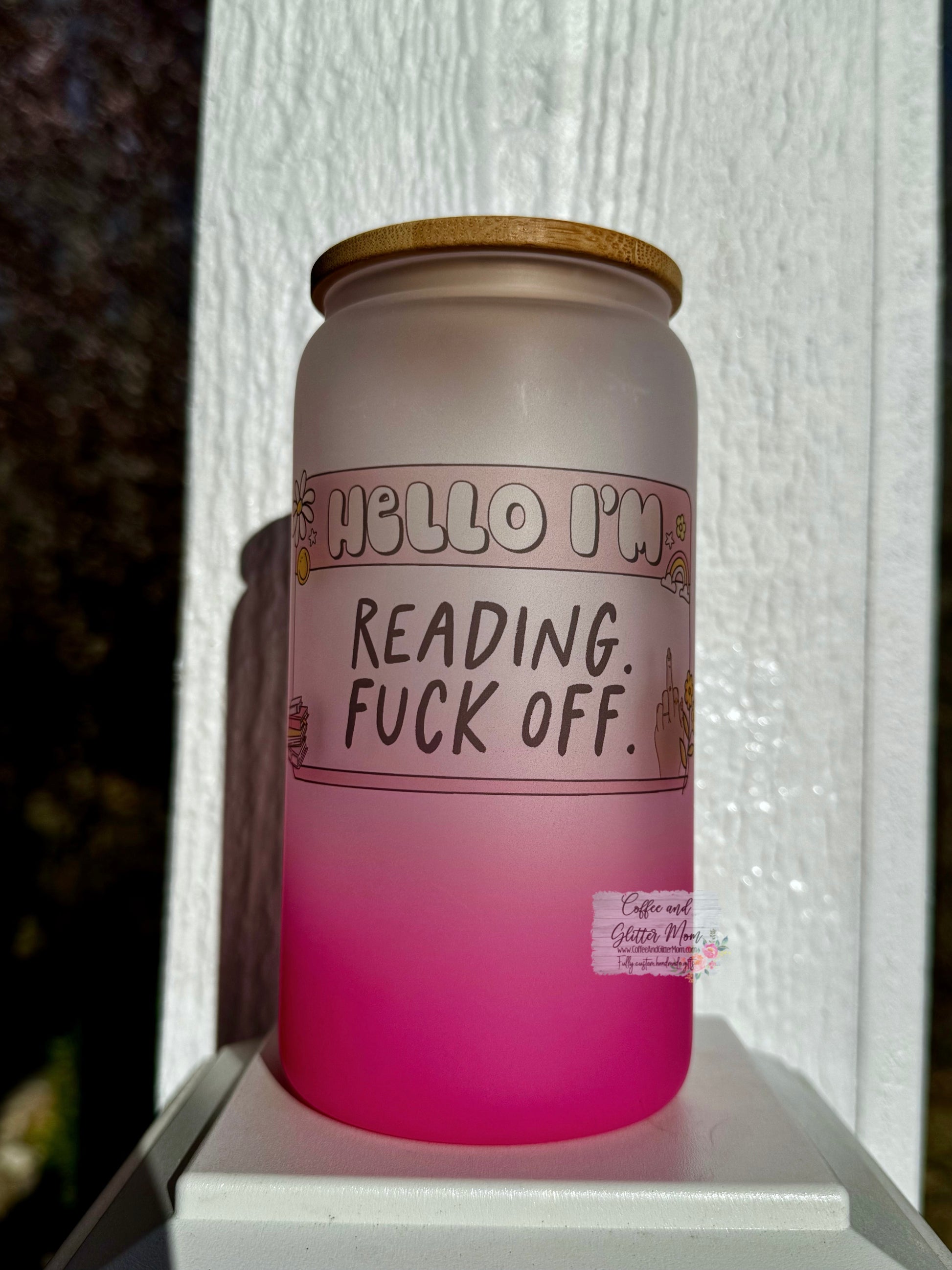 Fuck Off I'm Reading 16oz Pink Ombre Glass Can