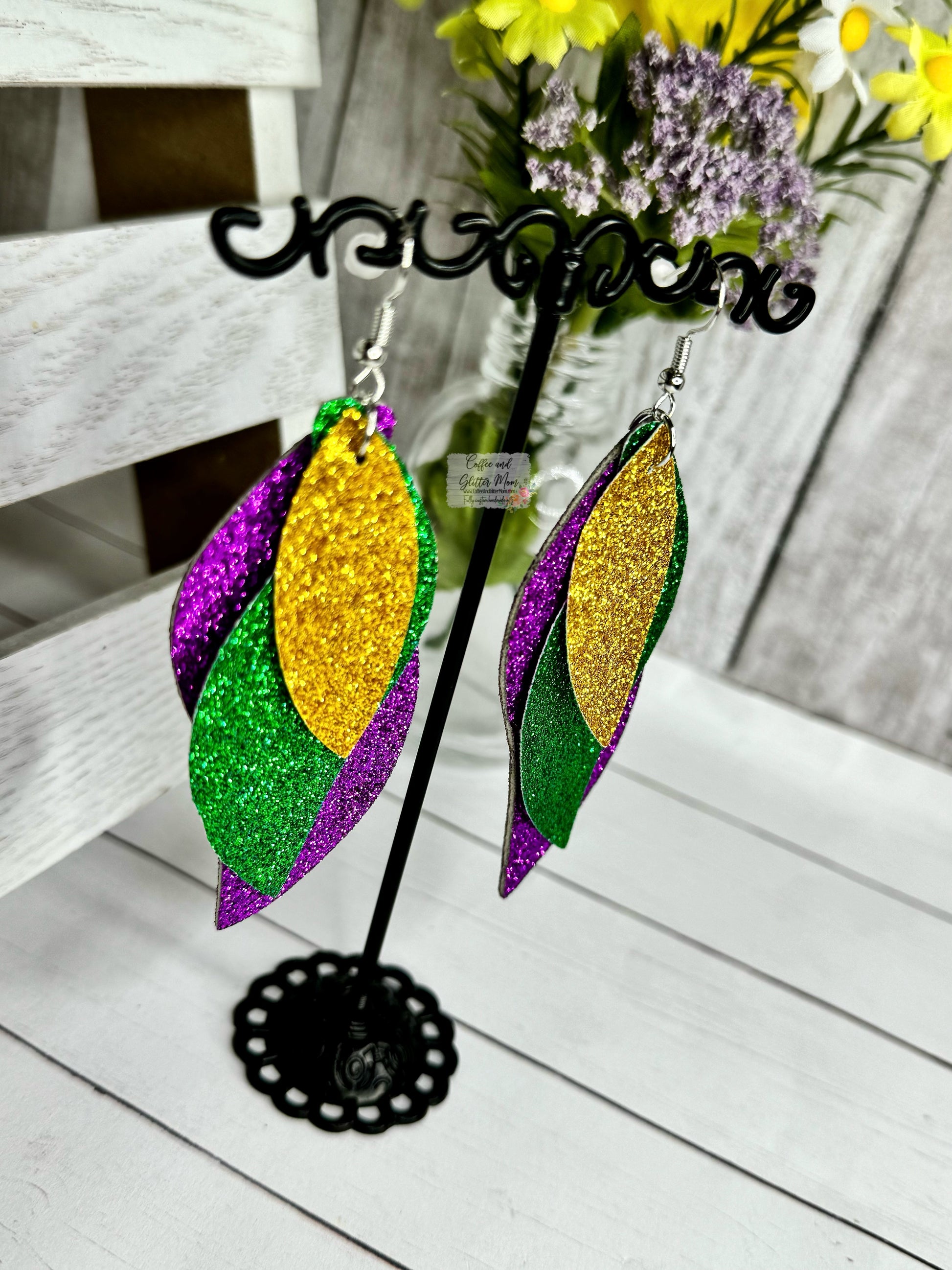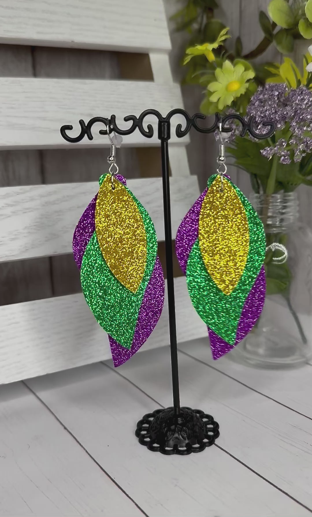 These lightweight faux leather earrings really pop with three layers of leopard print and gold sparkle!! They dangle 3.75 inches in total length and are about 1.25 inches in width. Limited quantities!