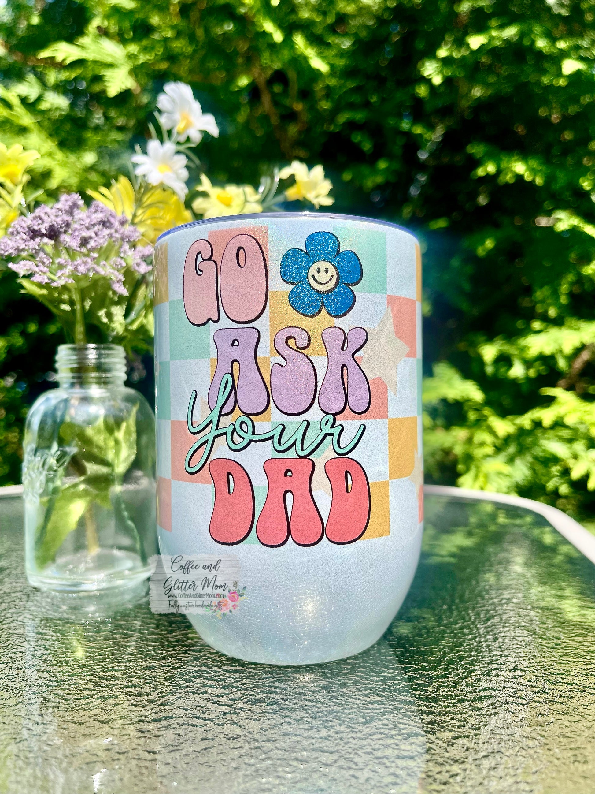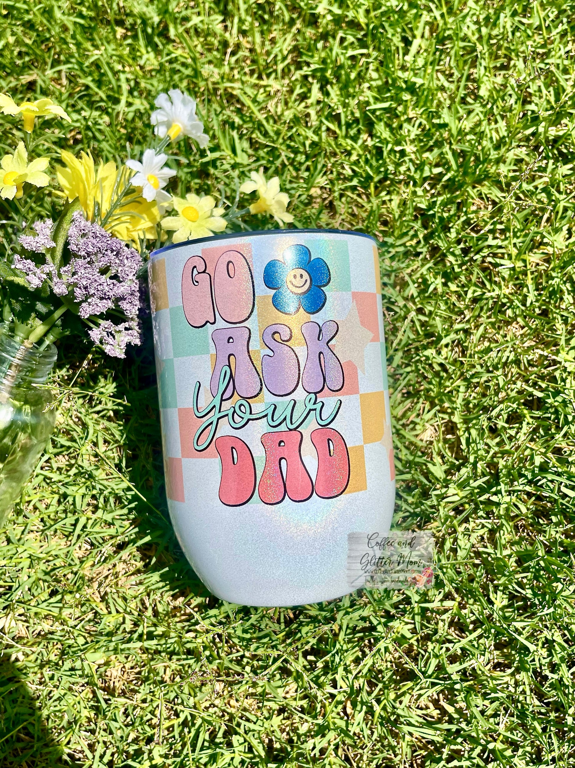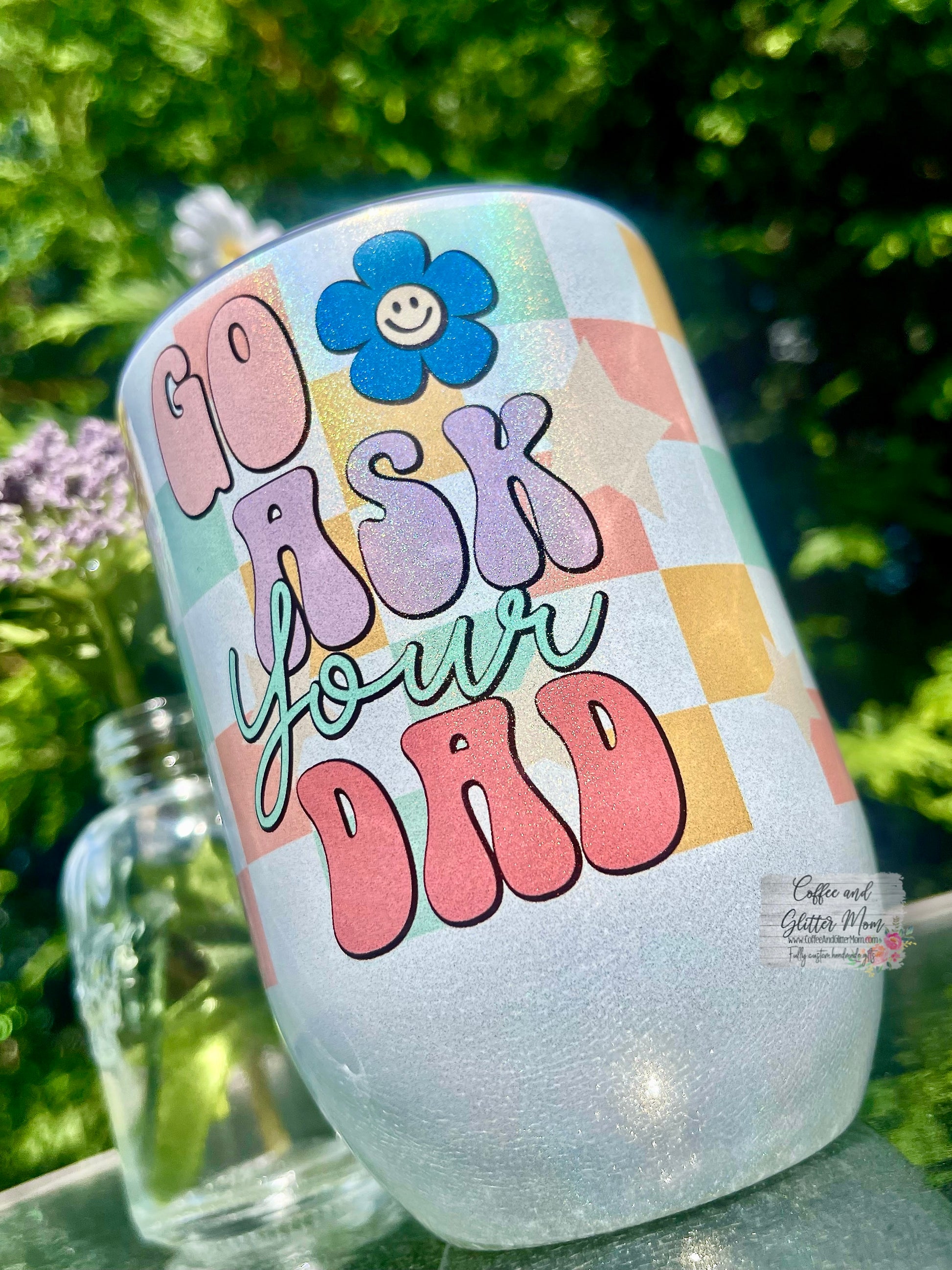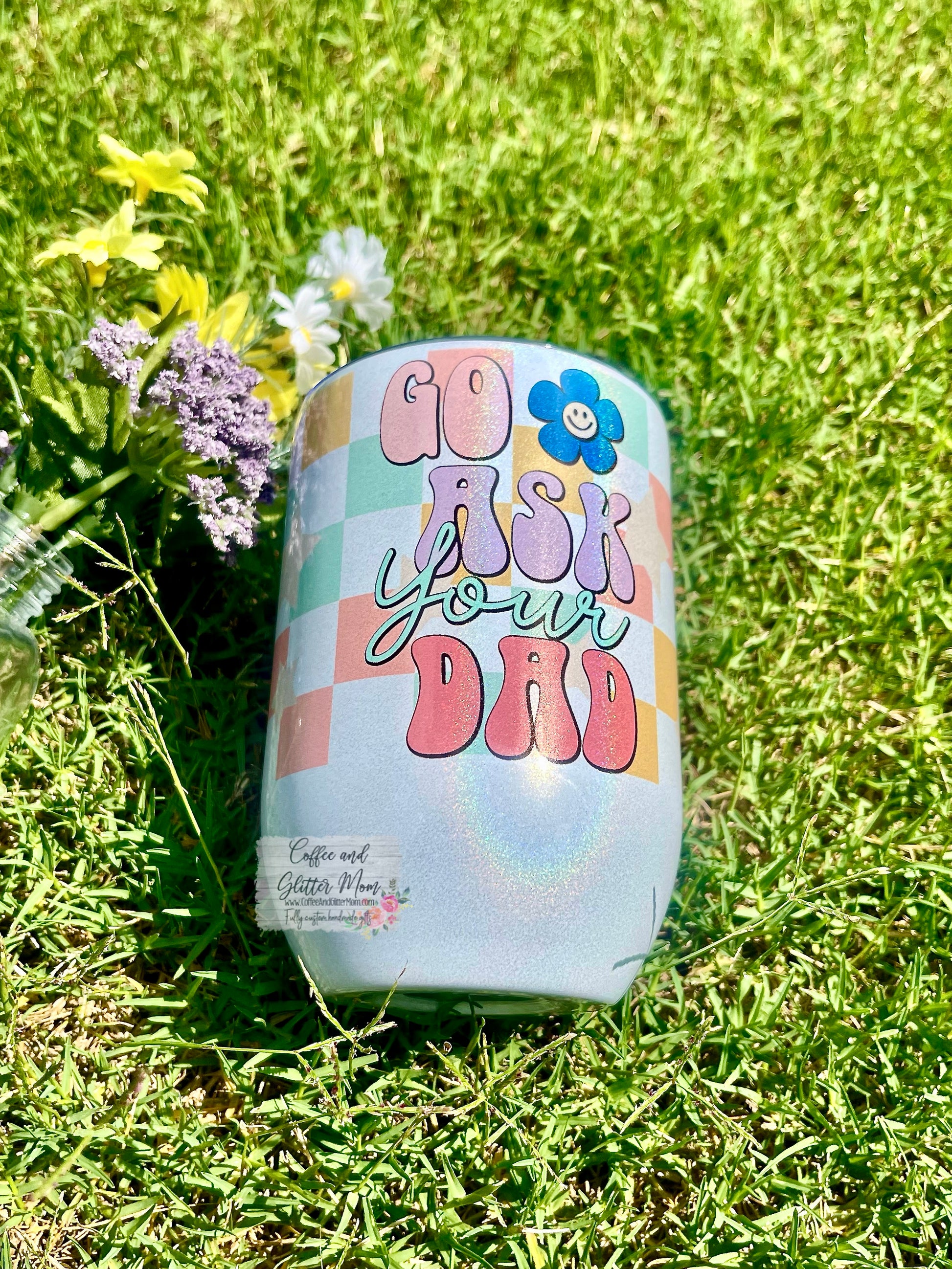 Go Ask Your Dad 12oz Holographic Sparkle Wine Tumbler